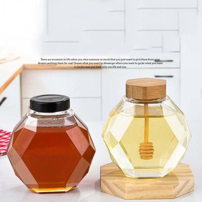 500 ग्राम शहद की बोतल हनी ग्लास भंडारण की बोतलें लकड़ी के ढक्कन