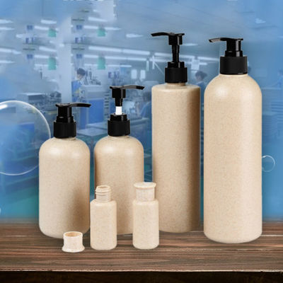 पर्यावरण के अनुकूल बायोडिग्रेडेबल प्लास्टिक की बोतलें OEM कॉस्मेटिक पैकेजिंग कंटेनर गेहूं के भूसे