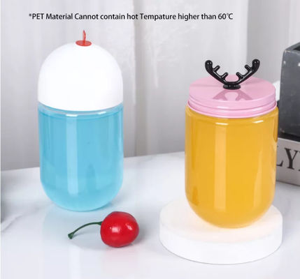 गर्म बिक्री 350 मिलीलीटर पीईटी सफेद पेंच कैप के साथ प्यारा एंटलर दूध चाय प्लास्टिक पेय की बोतलें साफ़ करें;