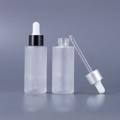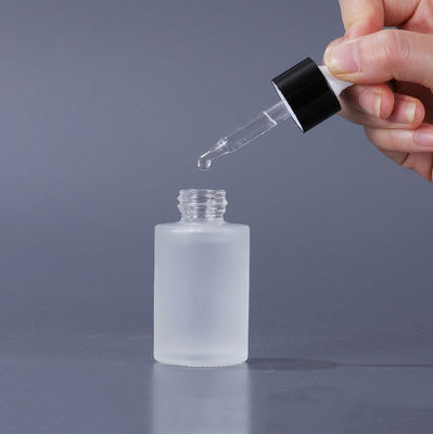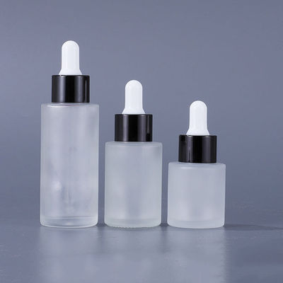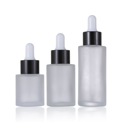 ग्लास कॉस्मेटिक कंटेनर फ्लैट शोल्डर फ्रॉस्टेड कॉस्मेटिक सीरम ड्रॉपर बोतल