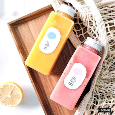 400 मिलीलीटर रस रचनात्मक डिस्पोजेबल स्क्वायर प्लास्टिक पेय की बोतल
