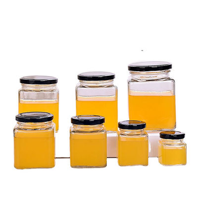 हनी के लिए कस्टम खाली खाद्य भंडारण स्क्वायर हनी जार ग्लास जार ग्लास स्टोरेज बोतलें