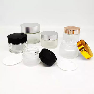 सिल्वर लिड 100ml लक्ज़री ग्लास कॉस्मेटिक कंटेनर के साथ थोक साफ़ कॉस्मेटिक ग्लास जार