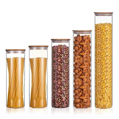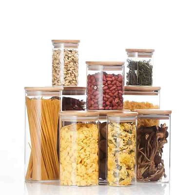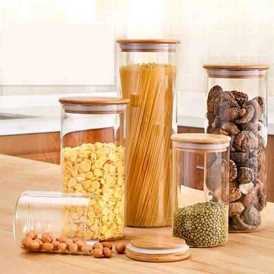 कांच भंडारण की बोतलें एयर टाइट ग्लास जार भंडारण बांस ढक्कन के साथ सूखे फल भंडारण