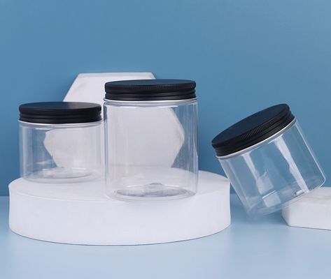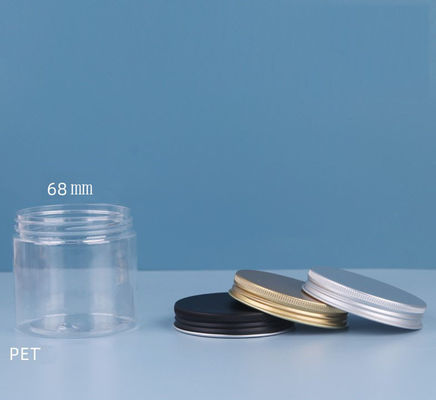 एल्यूमिनियम प्लास्टिक स्क्रू कैप के साथ 70 मिमी दौर पीईटी प्लास्टिक स्टोरेज जार अलग रंग कैप