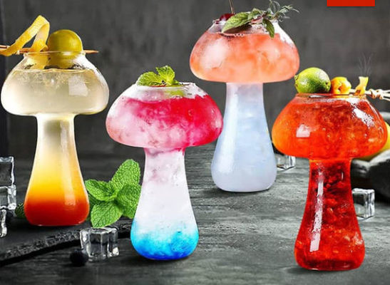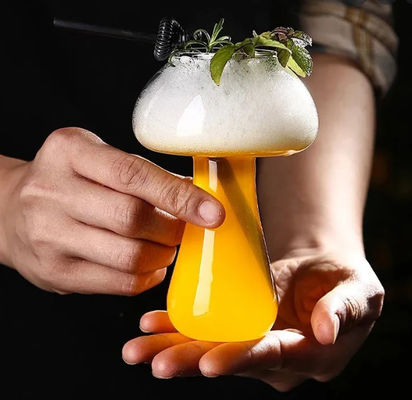 बार स्टोर कॉकटेल कांच की बोतल के लिए नया 285ml अद्वितीय पारदर्शी मशरूम आकार का पेय