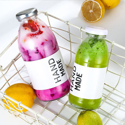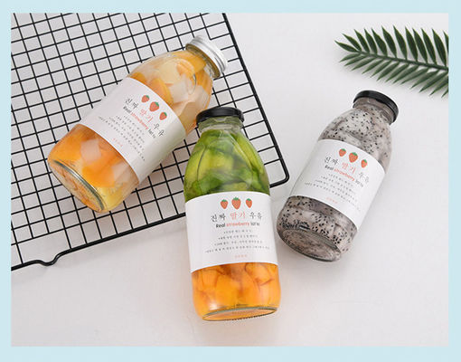 लेबल ग्लास दही मिल्कशेक बोतल दूध की बोतल के साथ 300 मिलीलीटर 350 मिलीलीटर 500 मिलीलीटर गोल आकार की पेय की बोतल